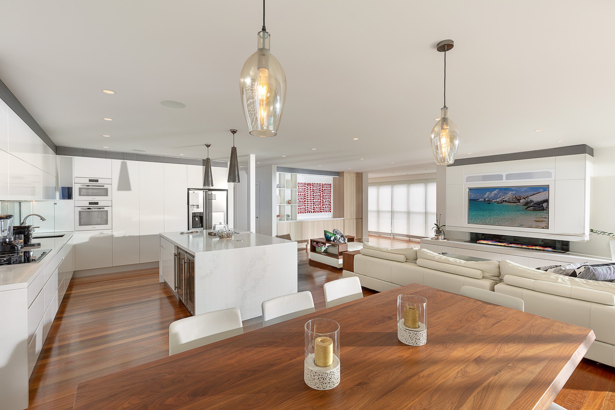 CKJ worked with TVincent Design to open up the living areas & refurbish the whole of the house inside & out. We added an additional bathroom as well as renovating two others. CKJ installed new hardwood flooring, new kitchen and provided joinery throughout the house. CKJ fully refurbished the garage, pool & all the landscaping.